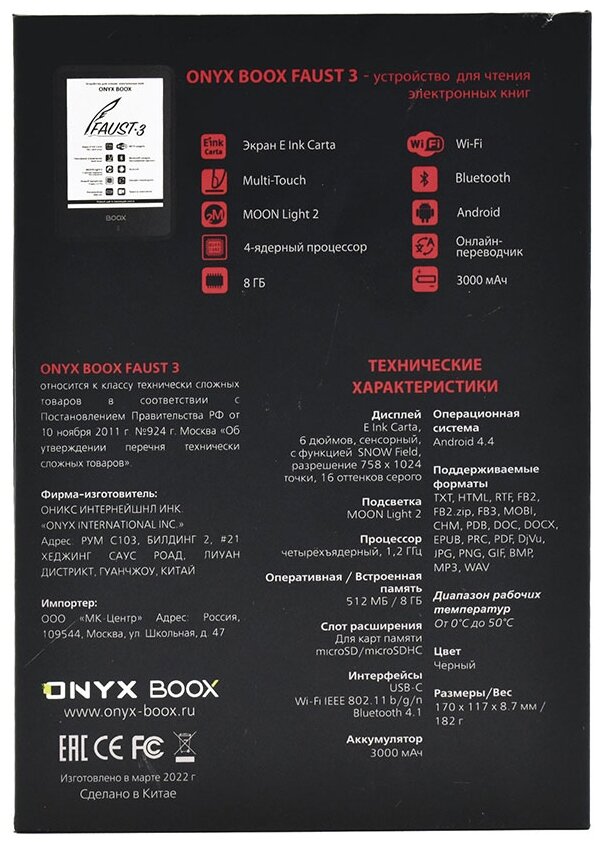 Ниже Вы можете прочитать отзывы на Электронная книга ONYX BOOX Faust 3 (Чёрная), ознакомится с подробными характеристиками, посмотреть интересные обзоры и фотографии на Электронная книга ONYX BOOX Faust 3 (Чёрная).