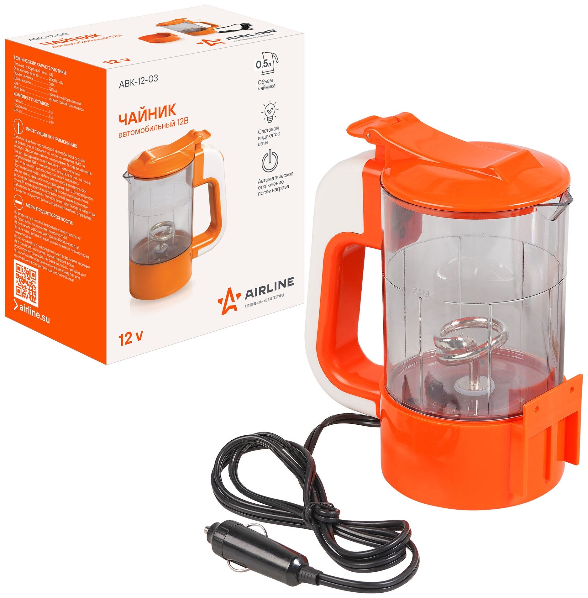 AIRLINE ABK-12-03 (ABK1203) чайник автомобильный 12в, прозрачный+оранжевый пластик, автоматическое