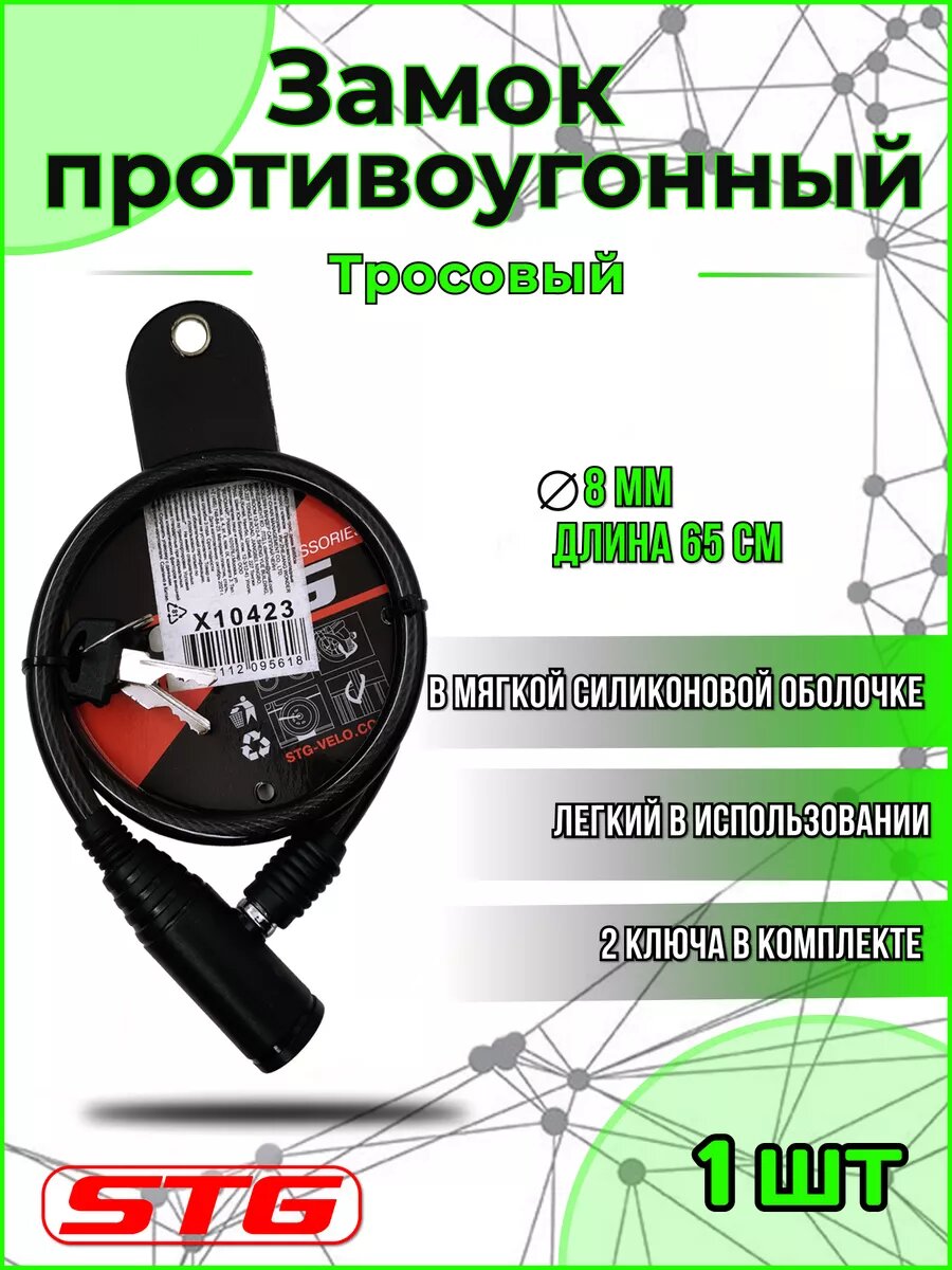 Замок велосипедный Stg -трос, диам.8х65см стальн.трос с ключом