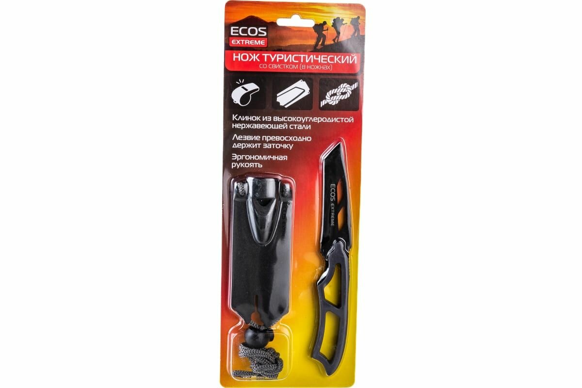 Купить Нож туристический Ecos EX-SW-B01GR со свистком в ножнах серый