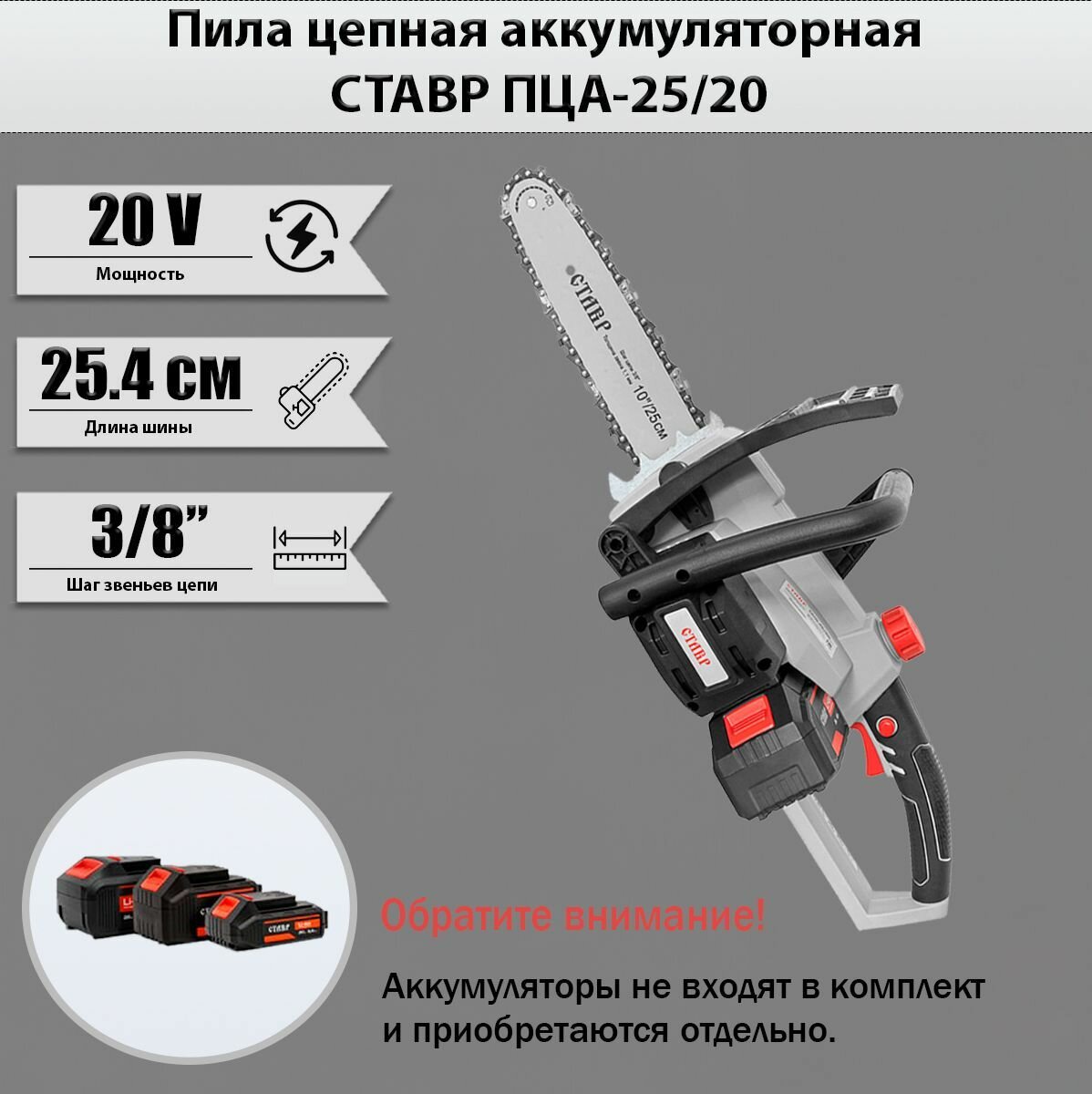 Пила цепная аккумуляторная ставр ПЦА-25/20 ст25-20пца
