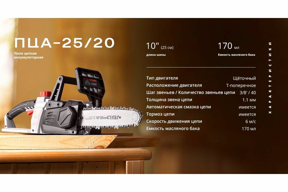 Пила цепная аккумуляторная ставр ПЦА-25/20