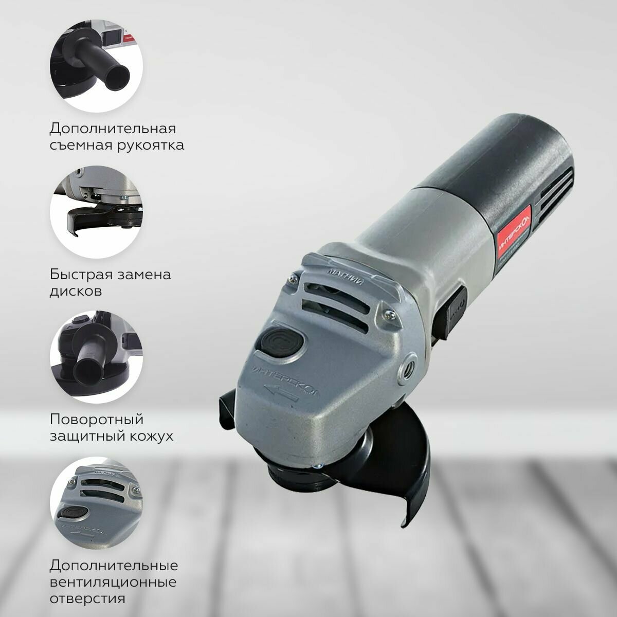 Угловая шлифмашина болгарка ИНТЕРСКОЛ УШМ-115/900, мощность 900Вт, диск 115, защитный кожух, блокировка шпинделя