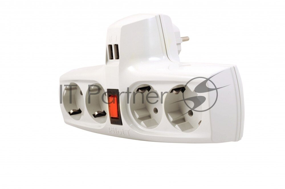 Разветвитель ZIS Pilot T Usb, 4 розетки (евро с заземлением), 2*USB Pilot T USB .