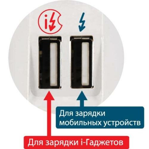 Сетевой фильтр Pilot T USB (разветвитель) белый, 4 розетки с заземлением + 2 USB, 5V/2A, для бытовой техники