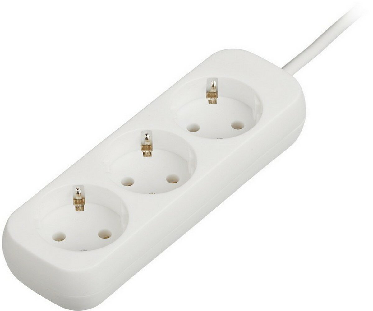 Удлинитель Promega jet 3 розетки с заземлением 1,5м, 10А, 2200 Вт, белый, 1 шт.
