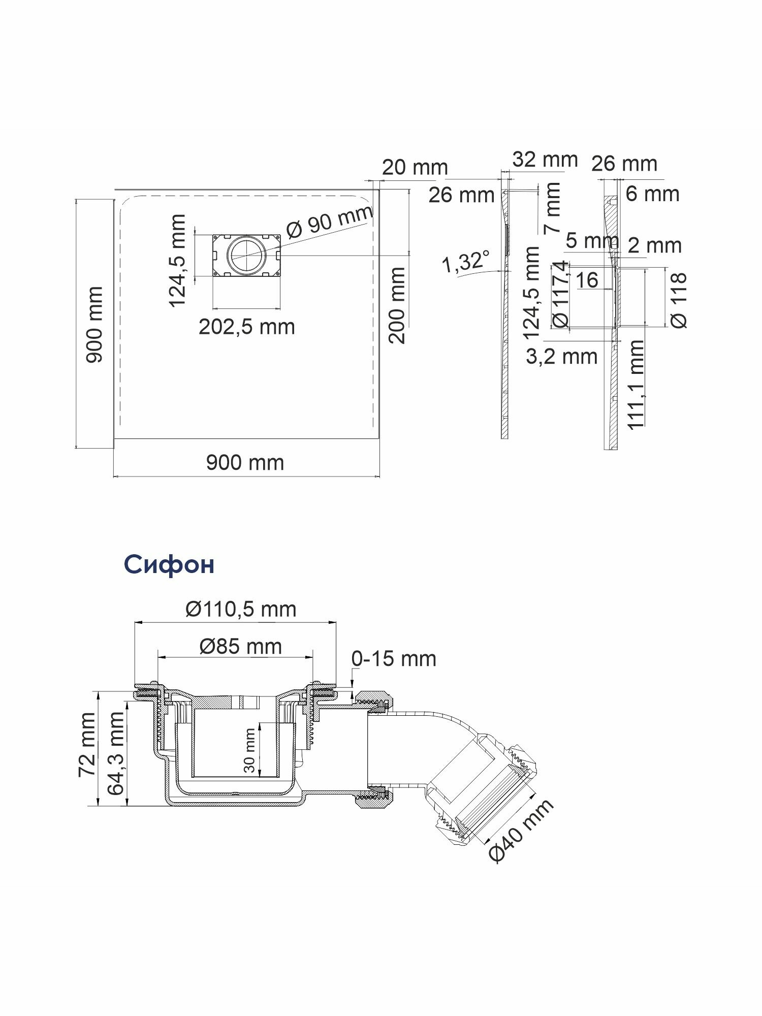 | Диаметр слива | 90 мм |