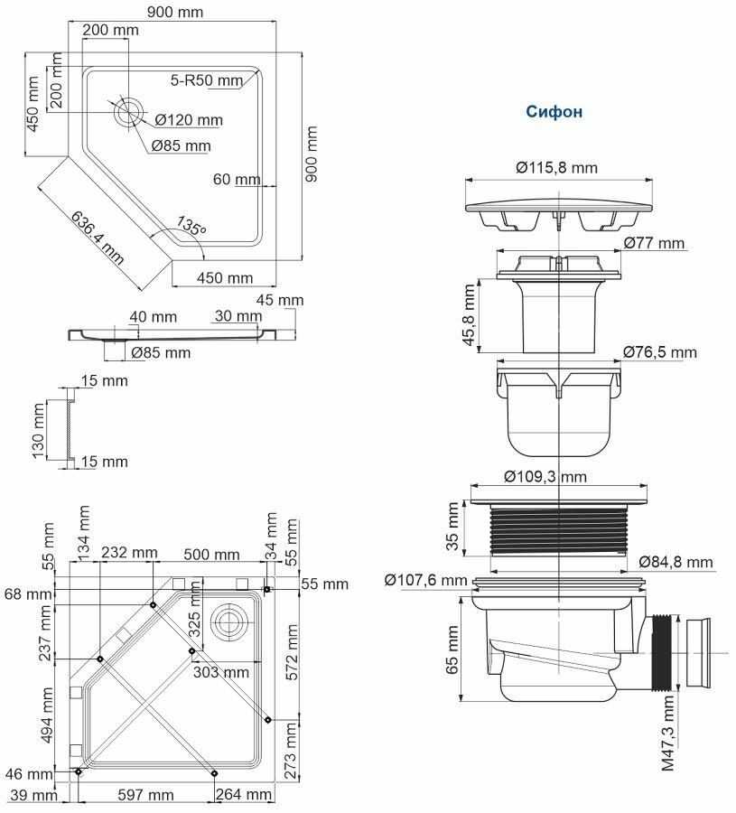 | Диаметр слива | 85 мм |
