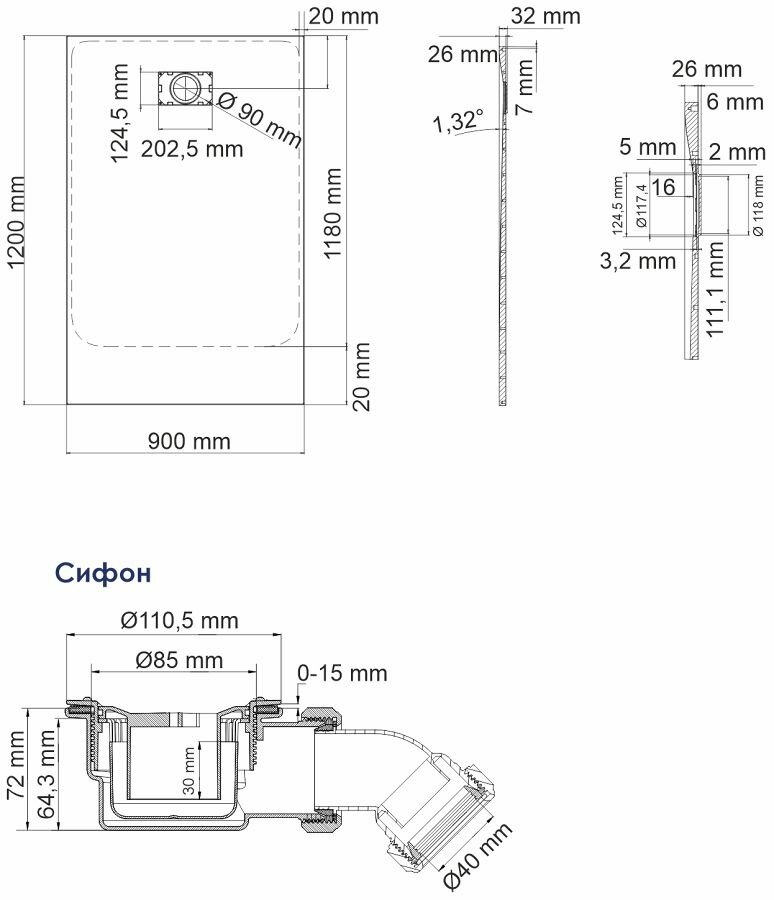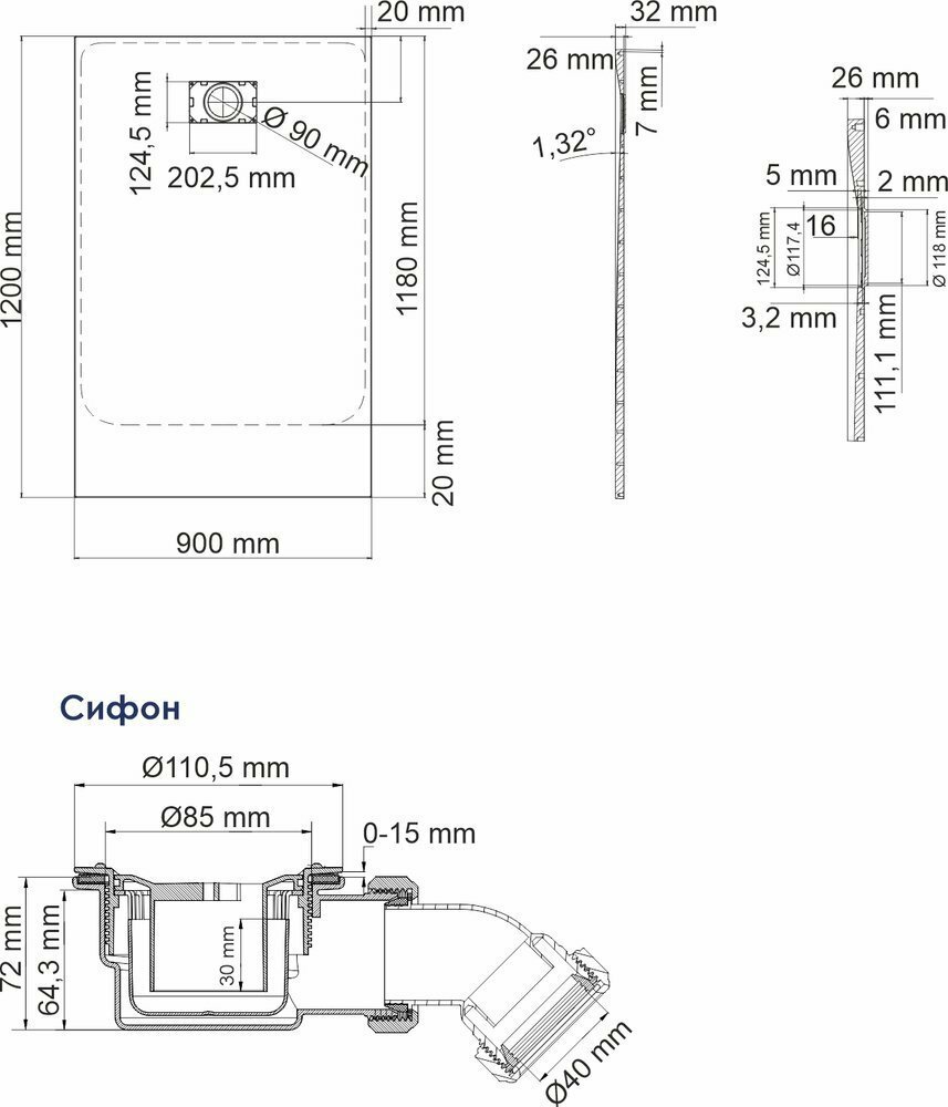| Диаметр слива | 90 мм |