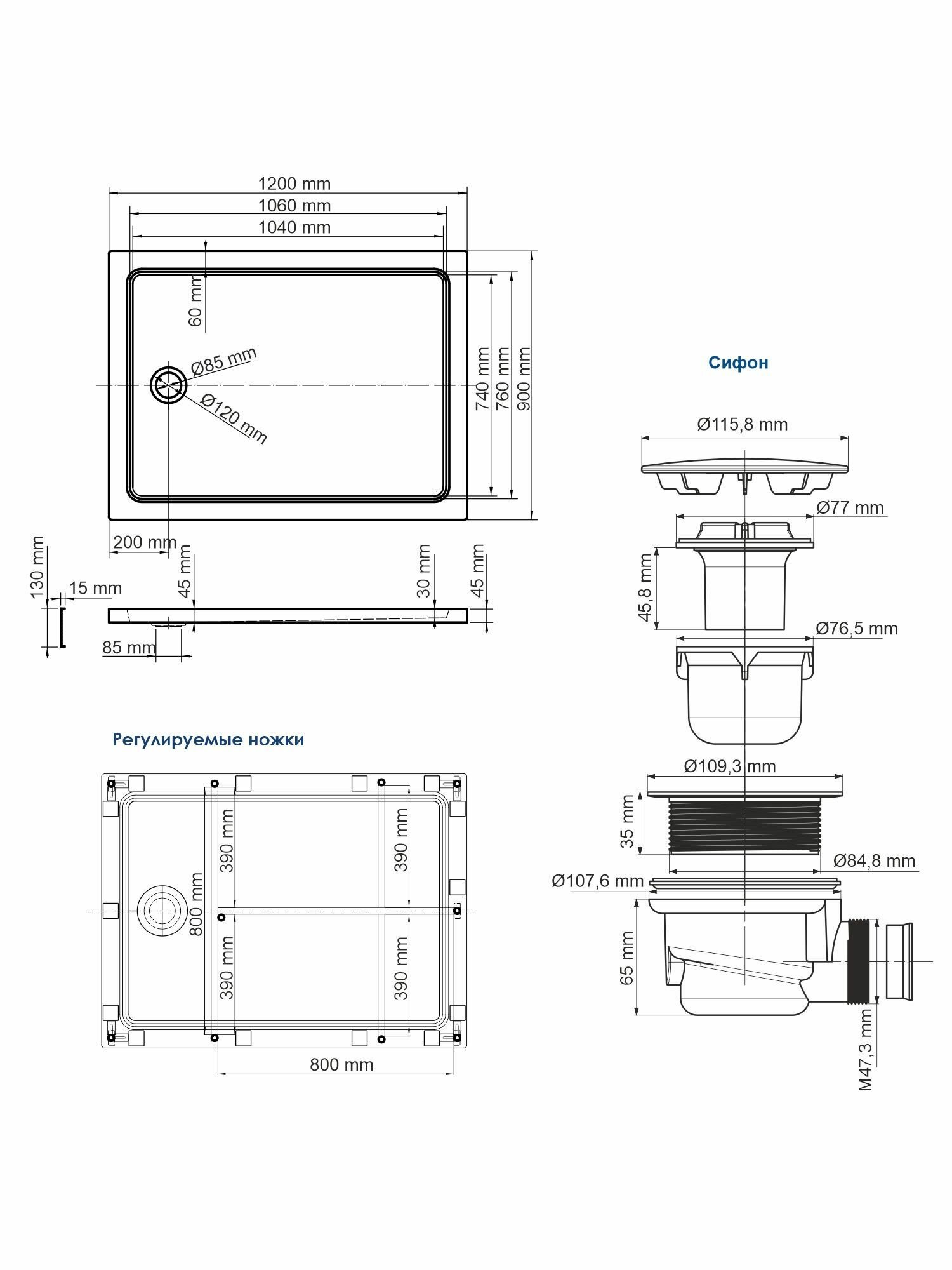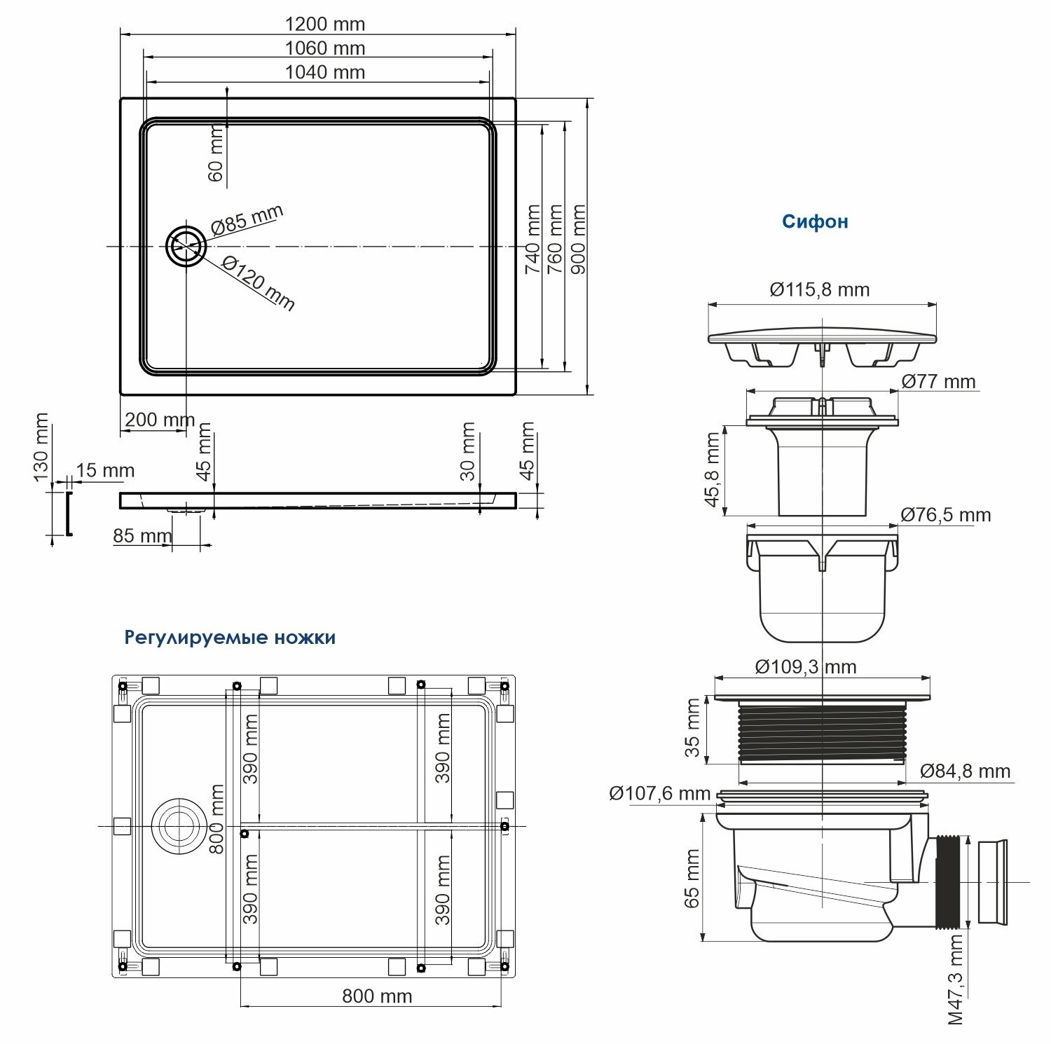 River Поддон для душа WEMOR 70/14 S квадратный 700*700*140 мм, с сифоном