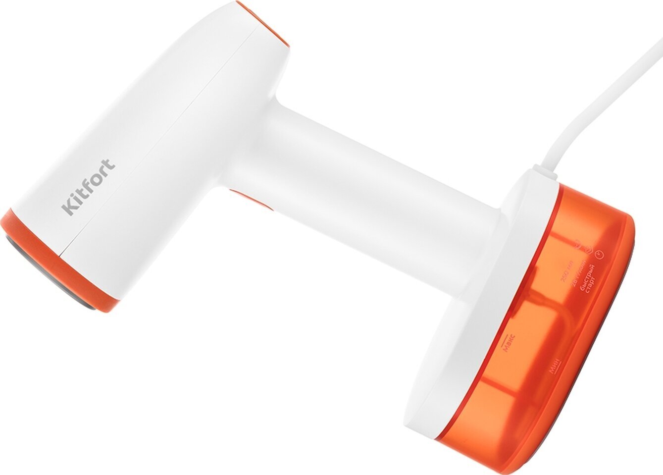 Отпариватель для одежды Kitfort KT-984-4 ручной, резервуар 250 мл, подача пара 28 г/мин, мощность 1600 Вт, оранжевый