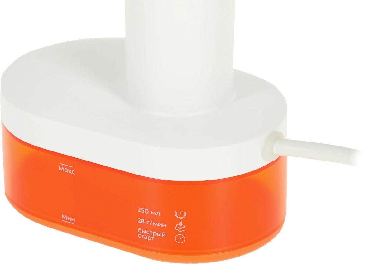 Отпариватель для одежды Kitfort KT-984-4 ручной, резервуар 250 мл, подача пара 28 г/мин, мощность 1600 Вт, оранжевый