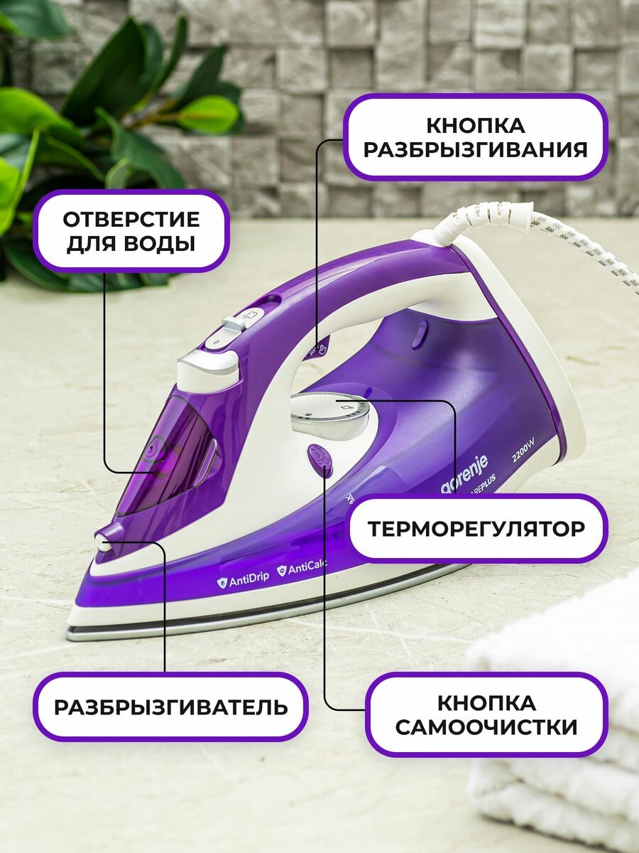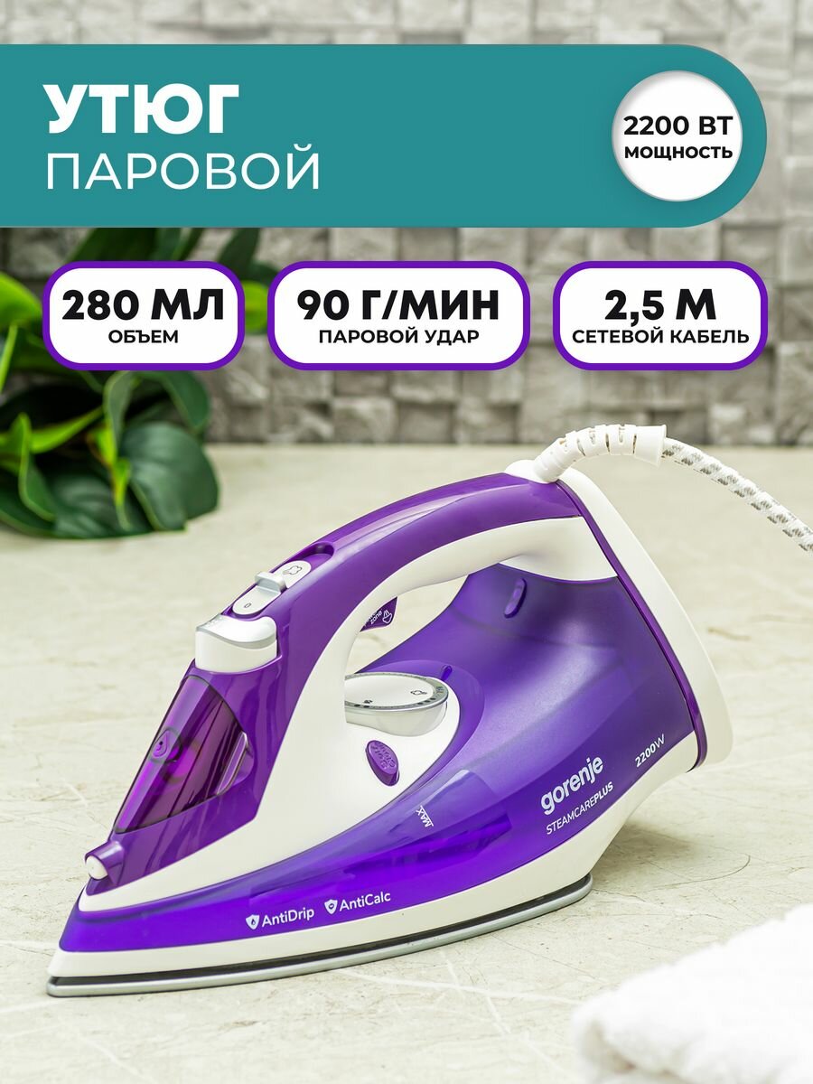 Утюг Gorenje SIH2200BBC, 2200 Вт, фиолетовый/белый