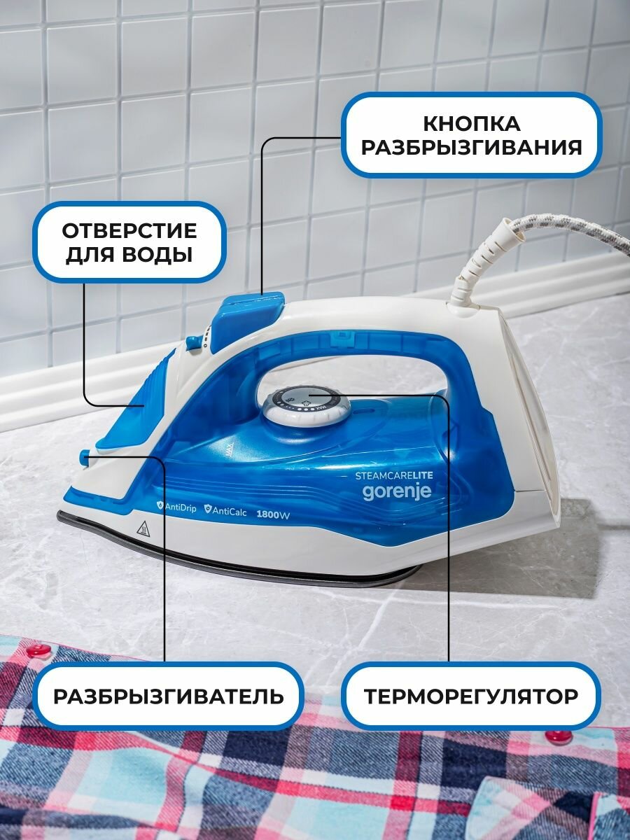 Утюг Gorenje SIH1800BLT, 1800 Вт, синий/белый