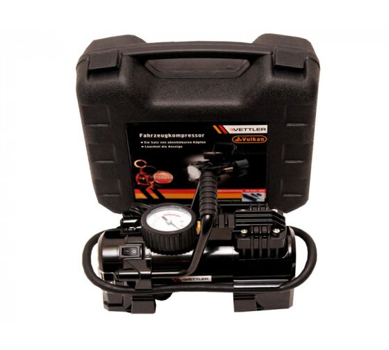 Компрессор VETTLER подкачки шин (35 л/мин., 10 АТМ.) метал.корпус в футляре 12В VULKAN интересное: