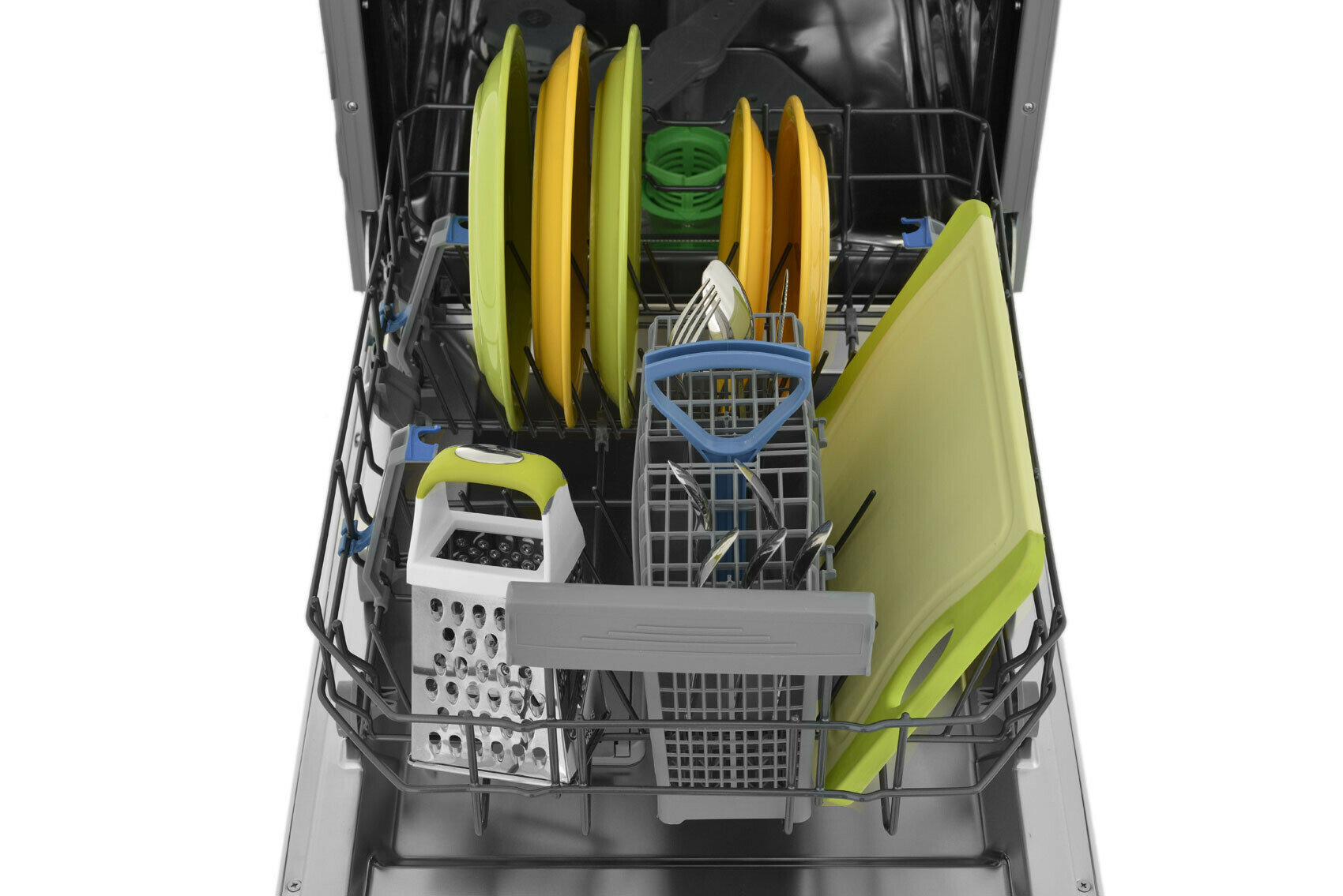 | Плюсы: | компактная, удобно расположены карзины для посуды, есть сушка, дополнительно контейнер для столовых приборов, можно подключить к горячей воде, идеальный вариант для семьи из трёх человек. |