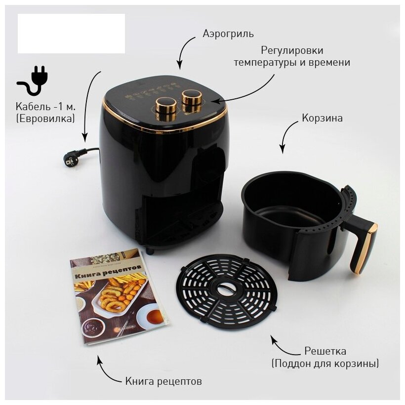 Аэрогриль EASYCOOK 1200W-220V-3.8L-220x220x280-BLACK/GOLD, ESTARES интересное: