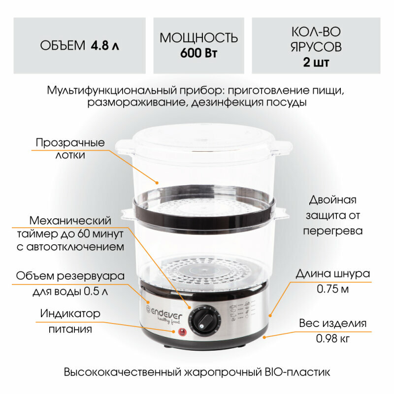 Пароварка ENDEVER Vita-165 черный/стальной интересное: