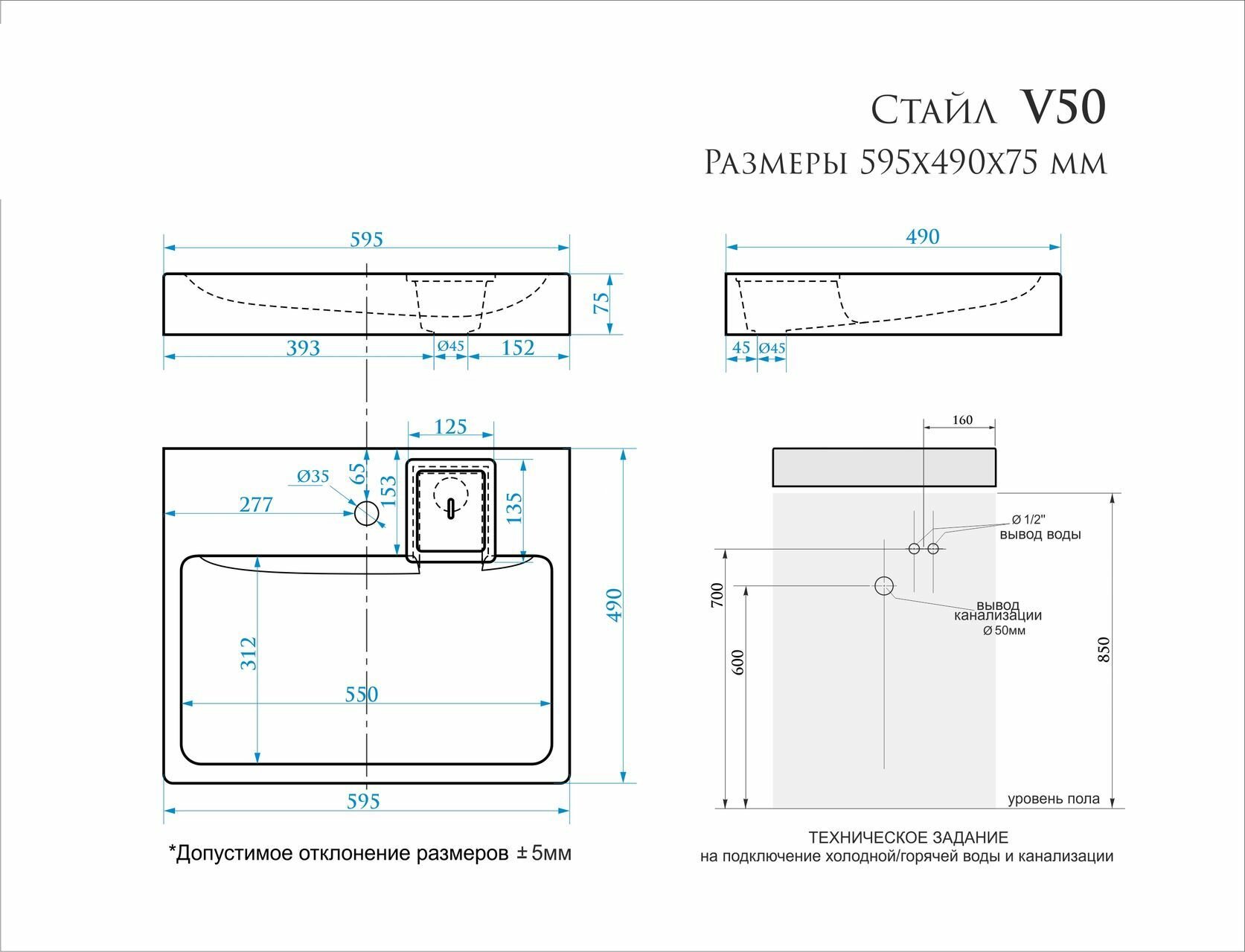 | Глубина | 50 см |