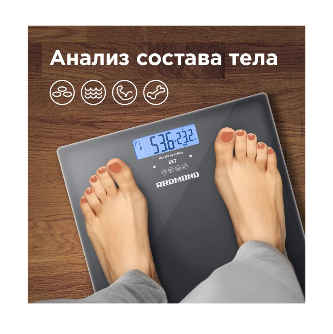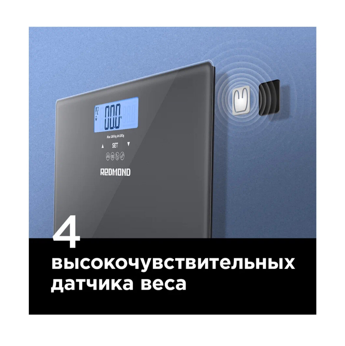 Напольные весы REDMOND RS-756, точность взвешивания до 100 г, память на 10 пользователей