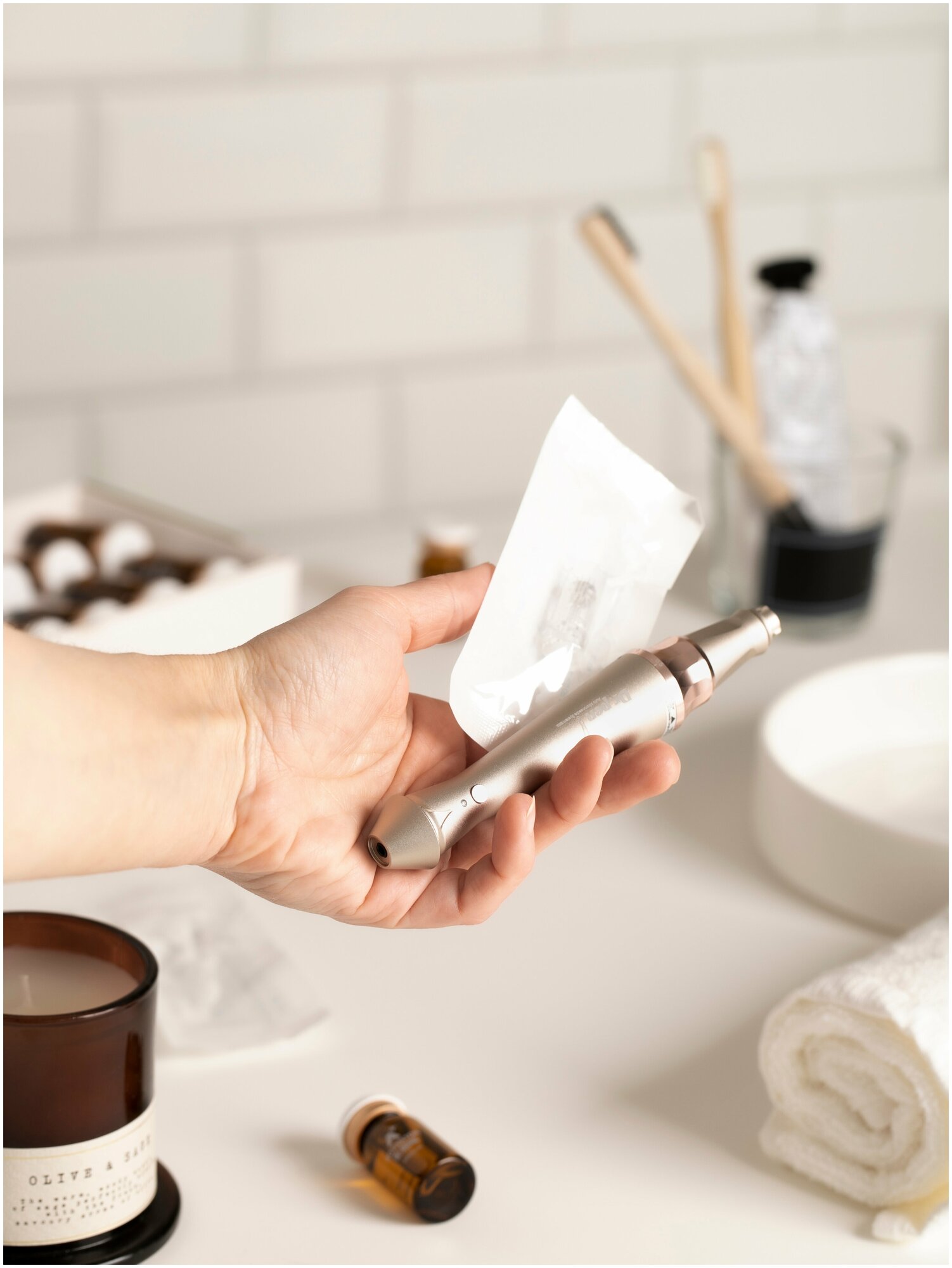 | Плюсы: | Аппарат визуально достойный, приятно держать в руке.работает довольно не шумно. Картридж вставляется легко. Попробовала в деле местами больно, придётся купить обезболивающий гель. Тело после работы дерма пеном приятно горит. |