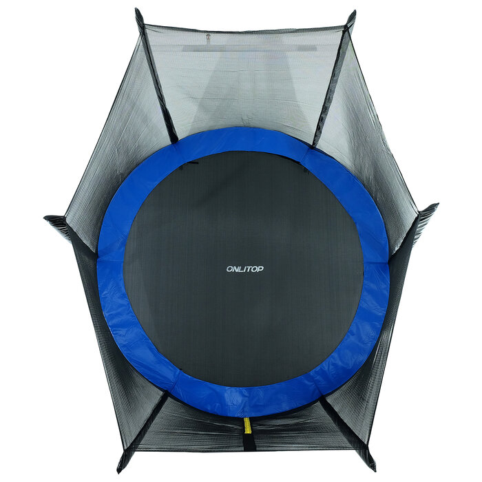 Батут ONLITOP, диаметр 244 см, с внешней защитной сеткой (173 см) и лестницей, максимально допустимый вес 150 кг, цвет синий