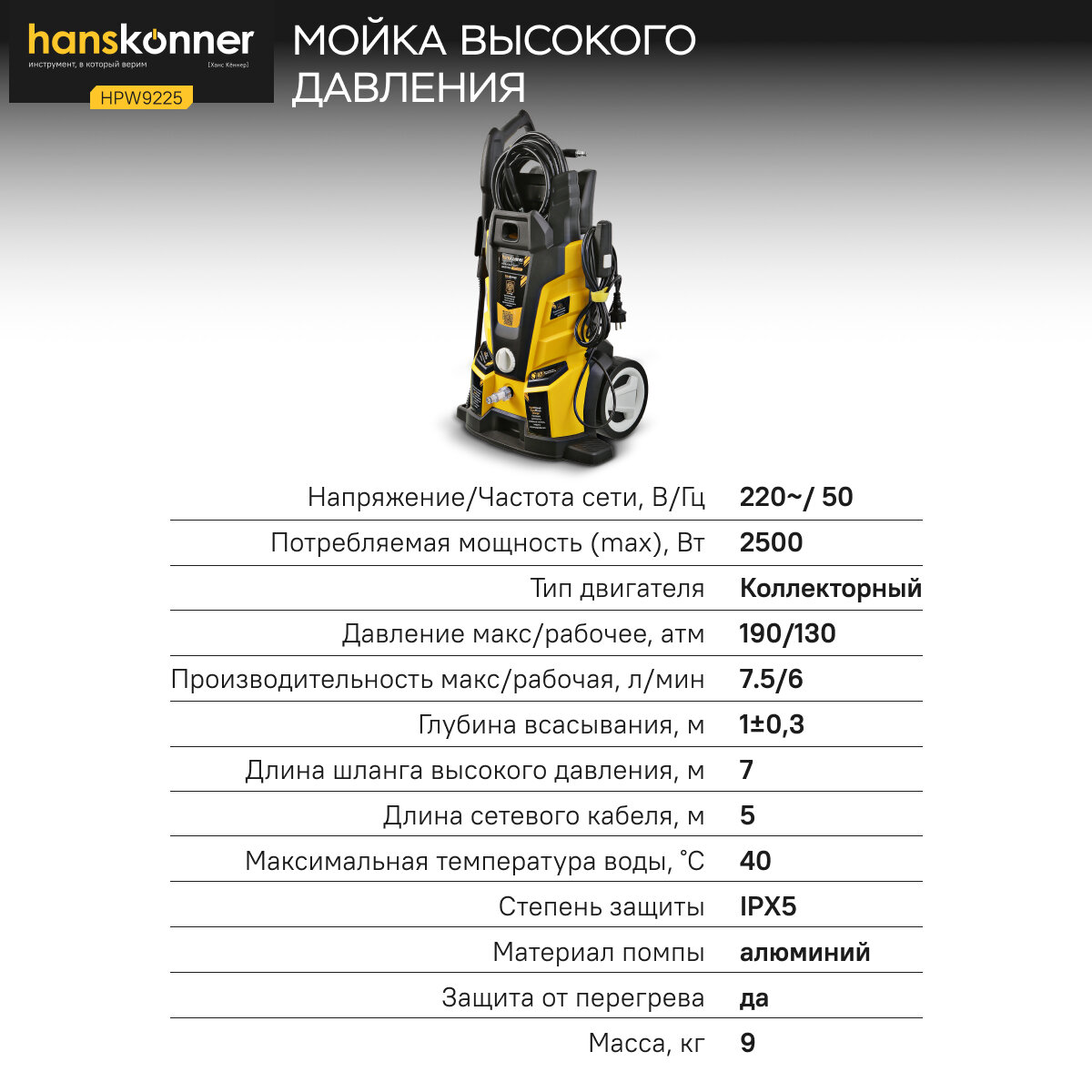 Мойка высокого давления Hanskonner HPW9225 интересное: