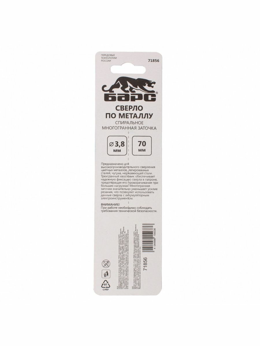 Сверло спиральное по металлу, 3.8 x 70 мм, Р9М3, многогранная заточка Барс 71856 интересное: