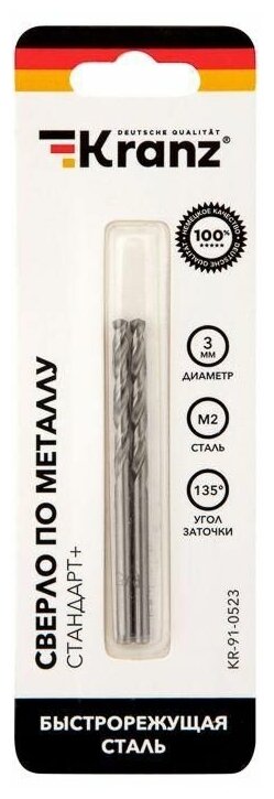 Сверло по металлу 3 мм «Стандарт+» (P6M5 M-2) (2 шт. в блистере) DIN 338 REXANT Артикул 91-0523 интересное: