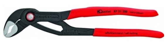 Клещи переставные универсальные KNIPEX COBRA QuickSet KN-8721250, захват - 50 мм (2"), длина 250 мм, обливные ручки, регулировка на детали