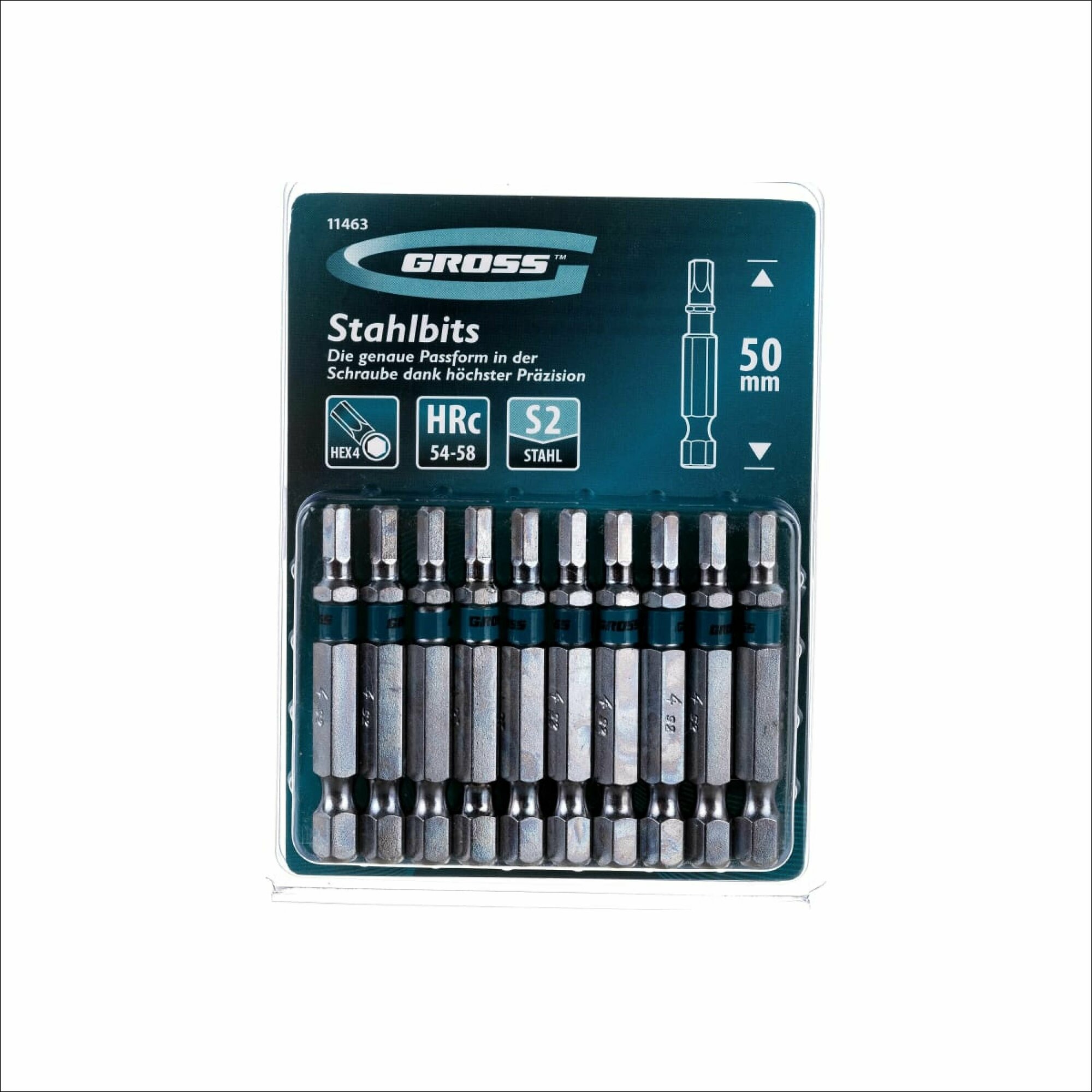 Набор бит HEX 4 х 50, сталь S2, 10 шт. GROSS 11463