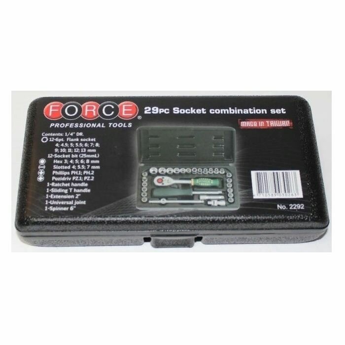 FORCE Набор 1/4 инстр. с 6-ти гран головками 29пр. FORCE 2292 1шт