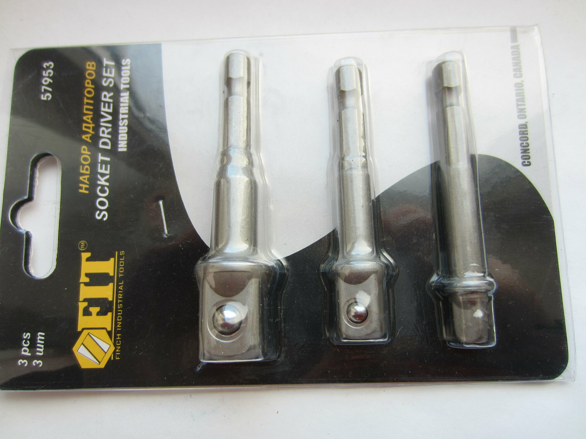 Набор адаптер под головки с1/4 -(1/4,3/8,1/2) 3 шт., CrV сталь FIT 57953