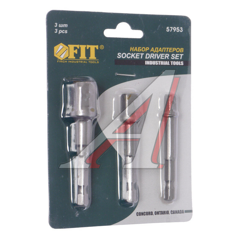 FIT IT Адаптеры под головки с хвостовика под биты , набор 3 шт., CrV. 57953