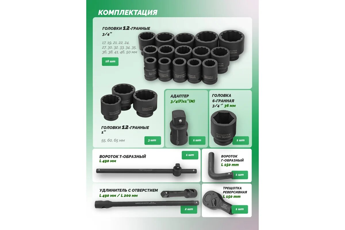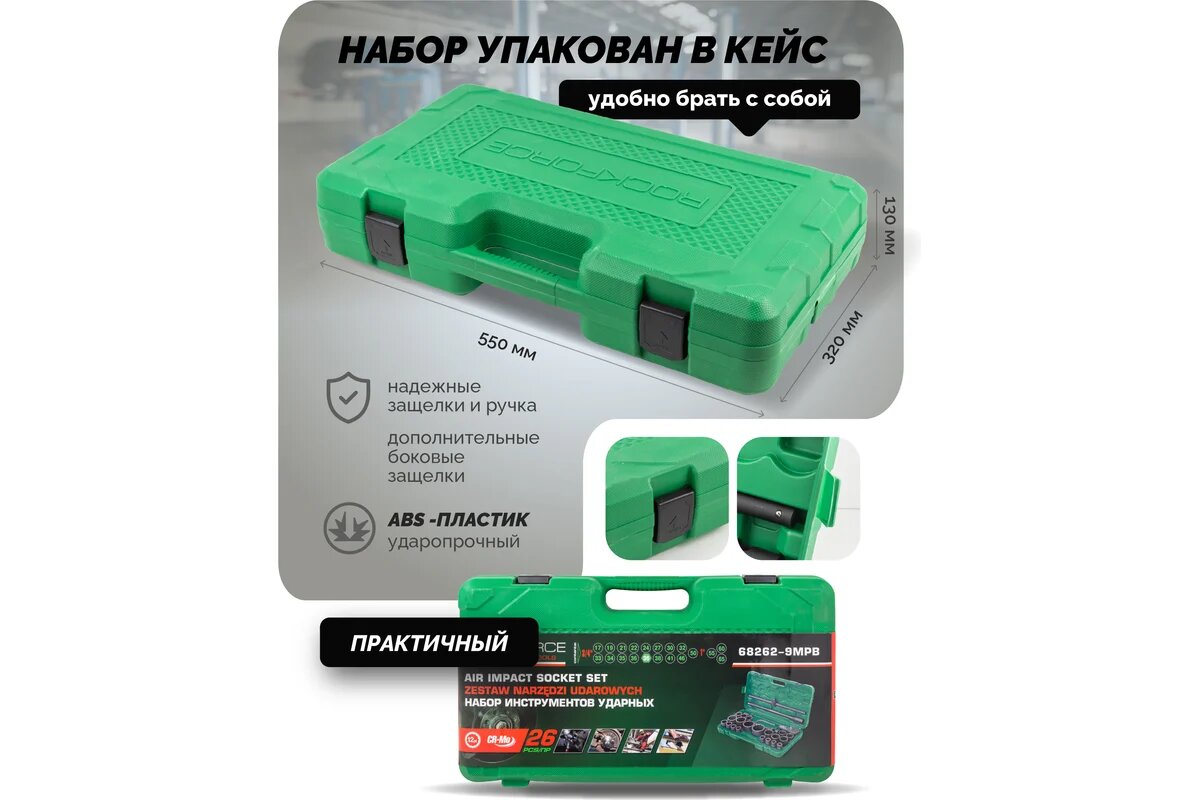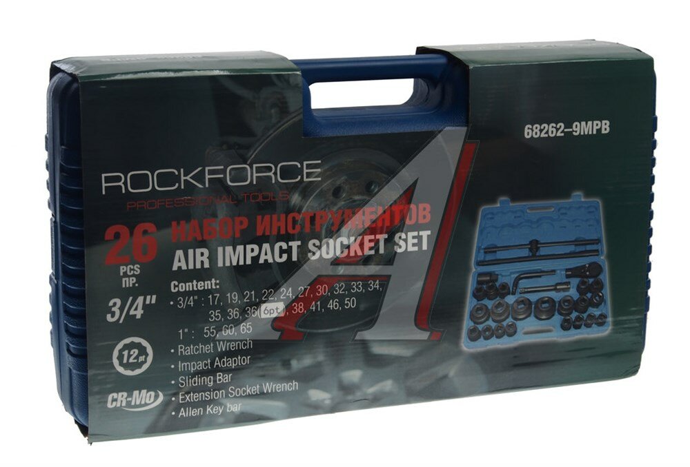 RF-68262-9MPB ROCKFORCE Набор инструментов ударных 3/4" и 1", 17-50 мм, 6/12-гранный, 26 пр.