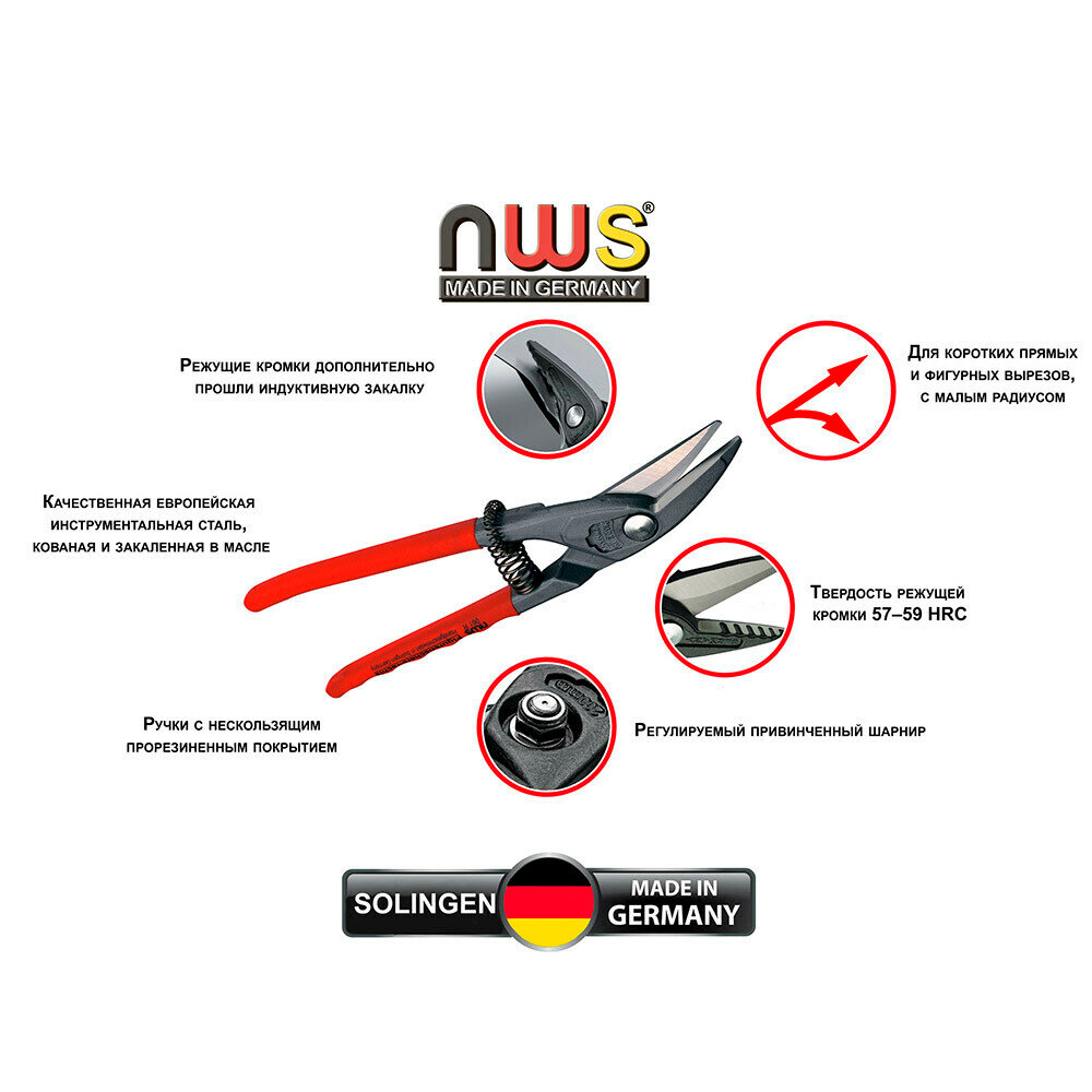 NWS Ножницы по металлу "Фигурные" прав.реж.кромка, фигурная резка малого радиуса 250 мм 061R-12-250