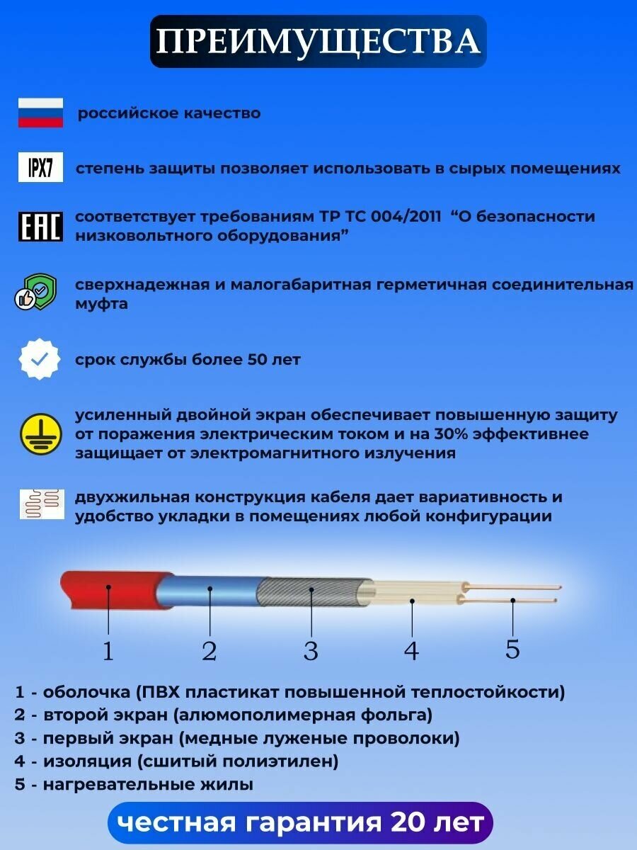 Теплый пол электрический ЧТК 5,0 м2 с терморегулятором