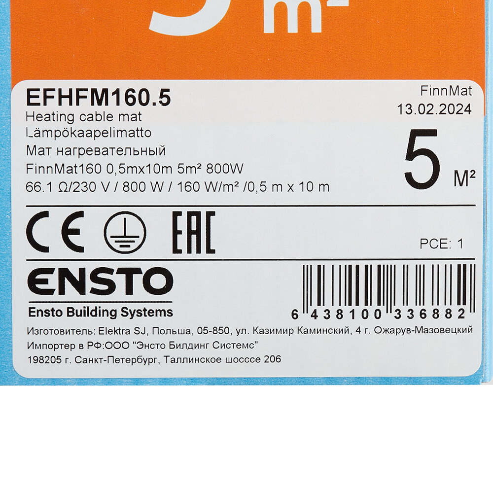 Купить Теплый пол нагревательный мат Ensto FinnMat 5 кв.м 160 (800) Вт