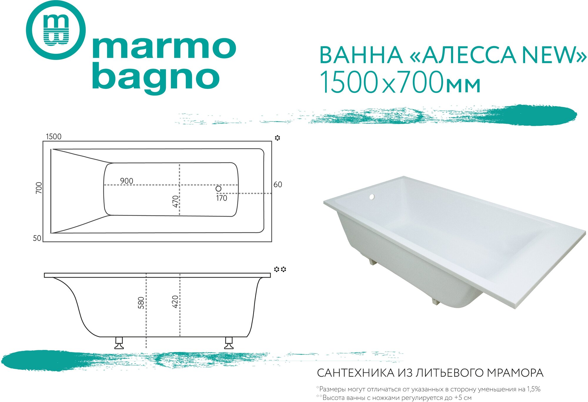 Ванна из литьевого мрамора Marmo Bagno Алесса NEW 150х70 интересное: