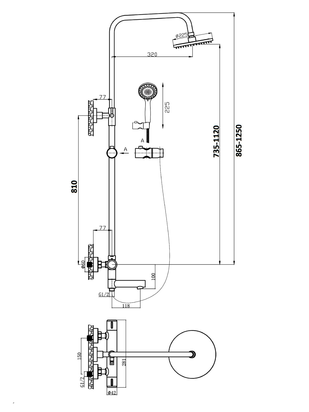 Душевая система Agger Thermo 225 с термостатом, черная (A2461144)
