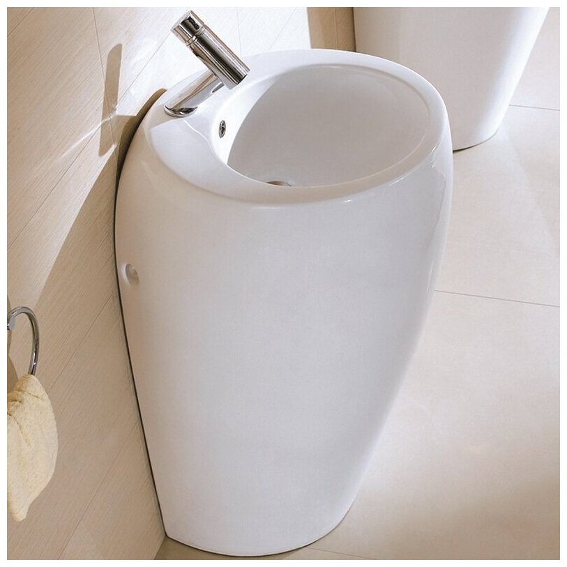Раковина для ванной, CeramaLux 1001, напольная, круглая, с антигрязевым покрытием, с отверстием под смеситель. Гарантия 10 лет.