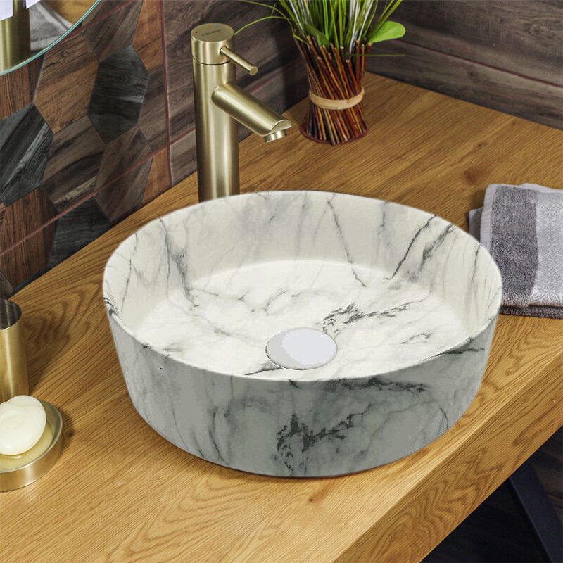 Раковина накладная Azario круглая, 120х355х355 мм, цвет мрамор матовый AZ-3134-ST