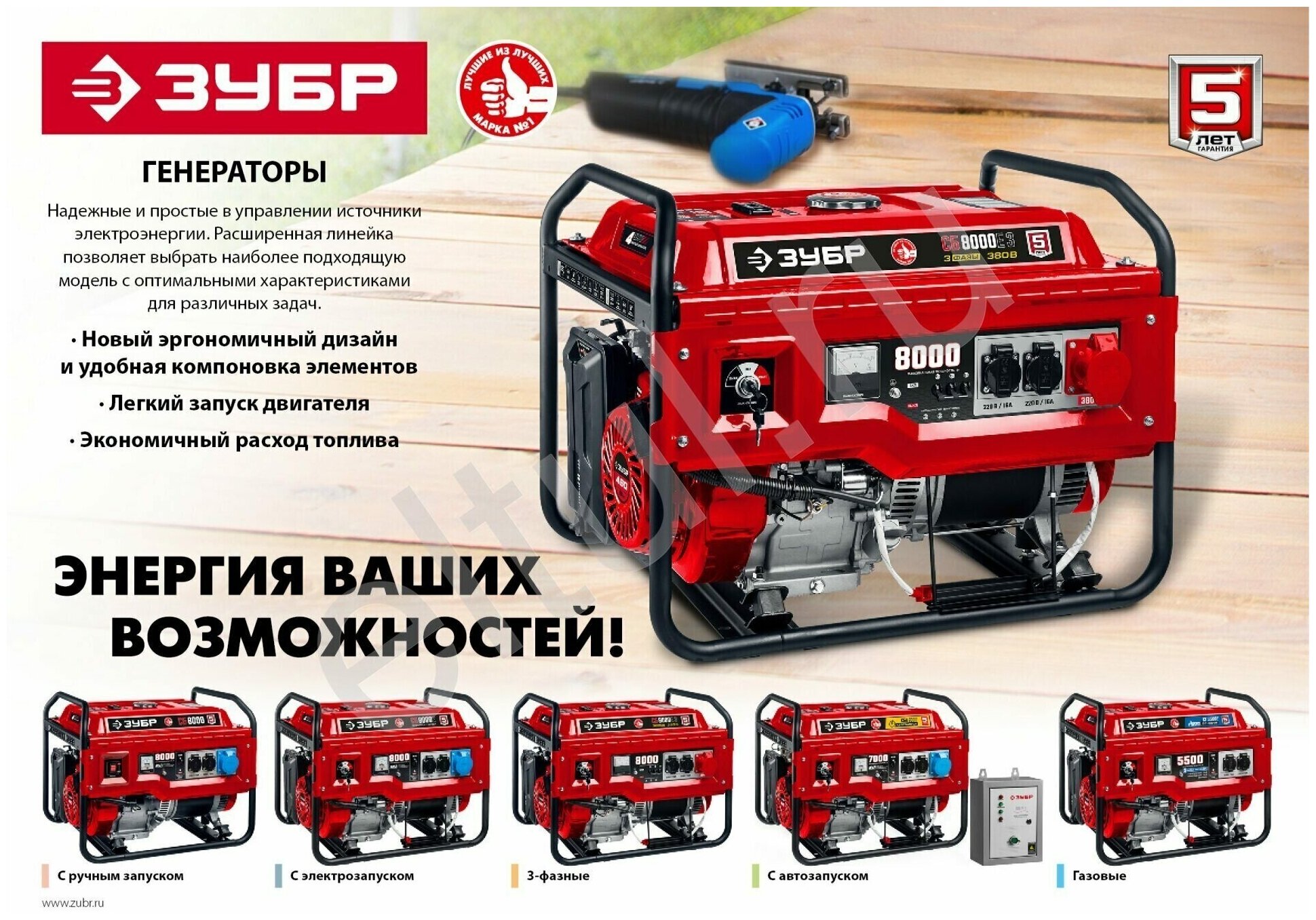 Зубр СБ-5500Е бензиновый генератор с электростартером, 5500 Вт, ЗУБР интересное: