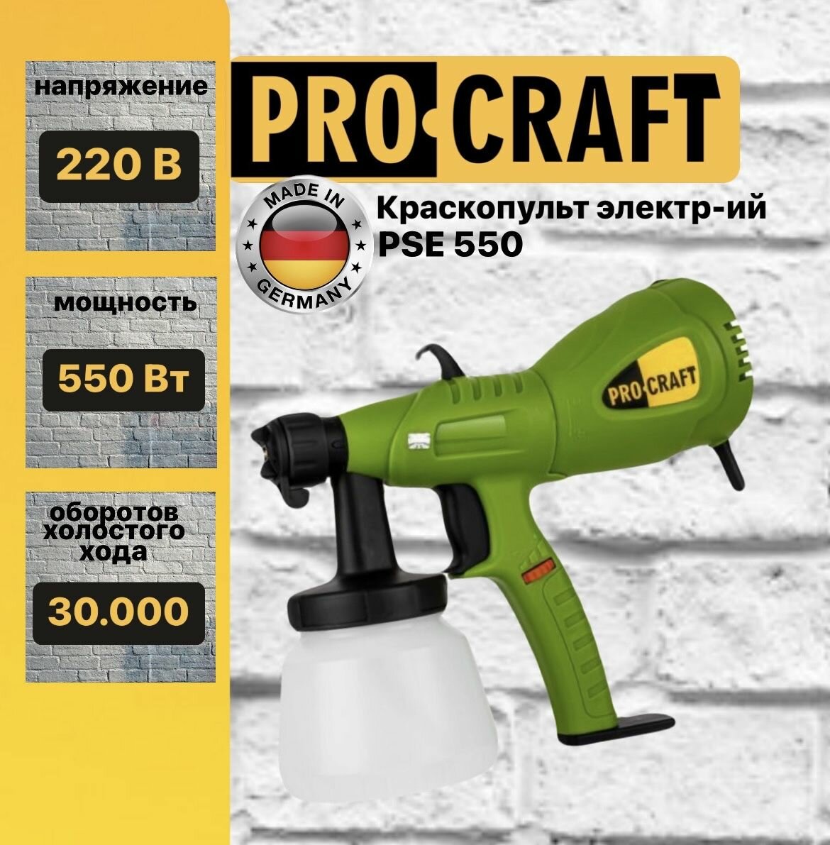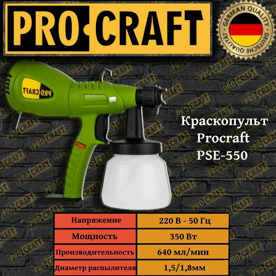 Краскопульт электрический для краски PROCRAFT PSE550, 640 мл/мин, 550Вт, 30,000об/мин