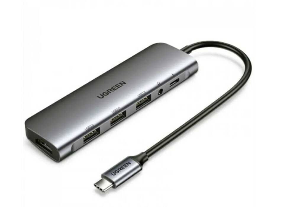 Мульти Хаб Ugreen CM136 USB-C to 3 x USB 3.0 / HDMI / mini jack 3.5 mm / USB-C (PD) серый (80132)