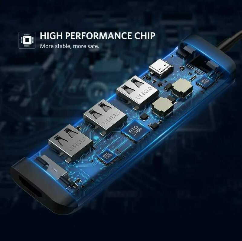 USB-концентратор Type-C Хаб Hub HB23 Easy view HDMI + USB3.0 + USB2.0 + RJ45 + PD