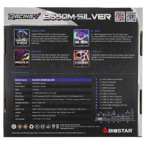 Материнская плата BIOSTAR B550M-Silver (AM4, mATX)