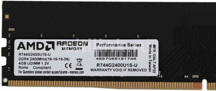 Оперативная память AMD Radeon R7 Performance Series R744G2400U1S-U DDR4 - 4ГБ 2400МГц, DIMM, Ret