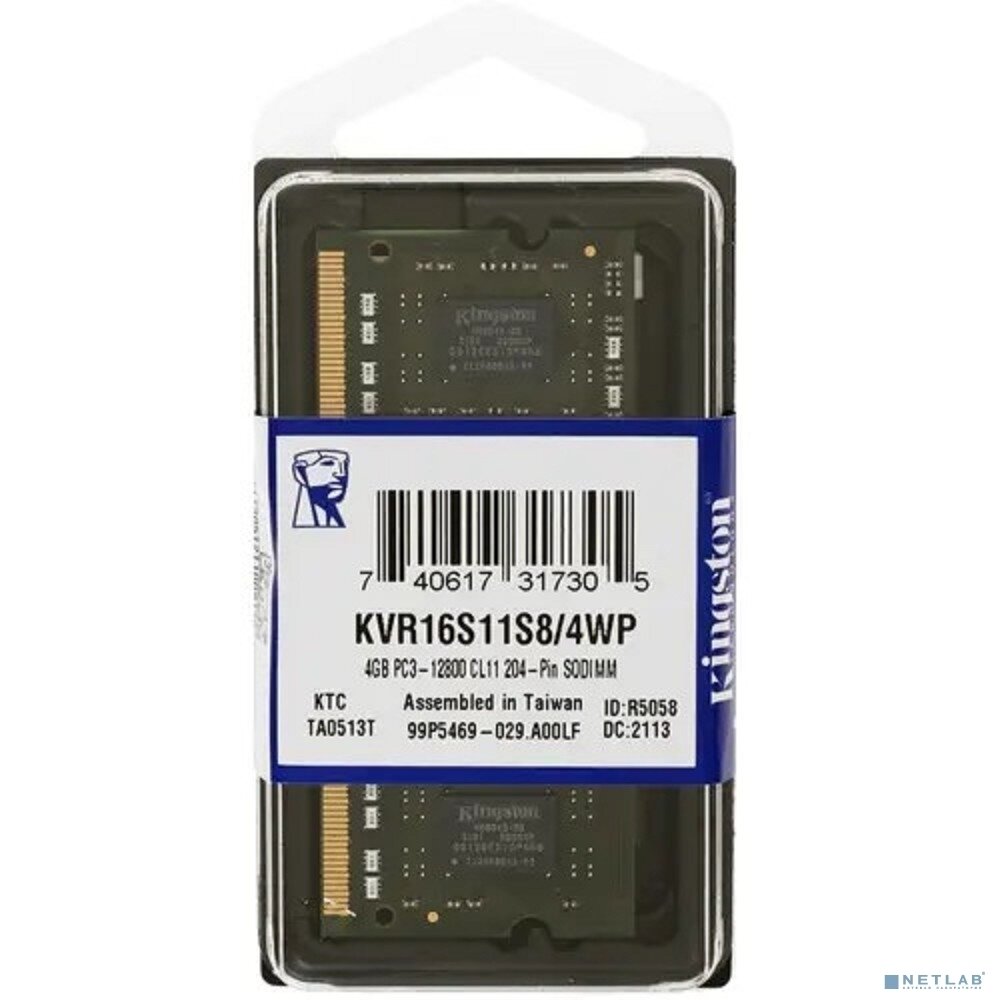 Kingston Модуль памяти DDR3 SODIMM 4GB KVR16S11S8 4WP PC3-12800, 1600MHz
