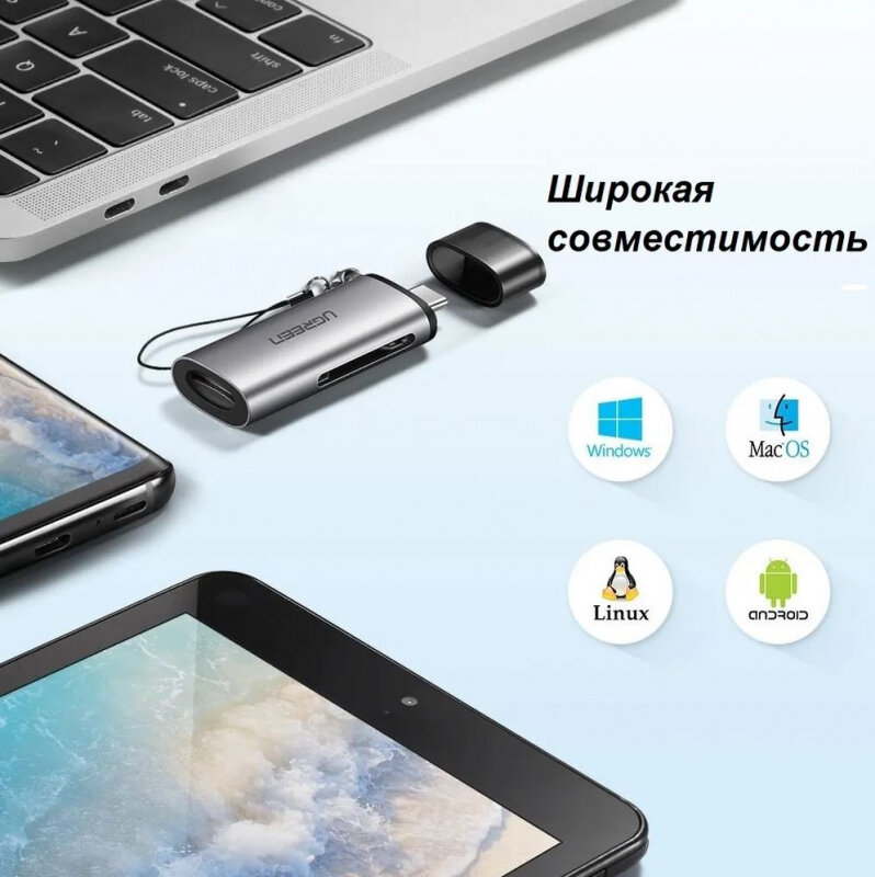 UGREEN. Кардридер USB-C 3.1 для карт памяти TF / SD (50704) интересное: